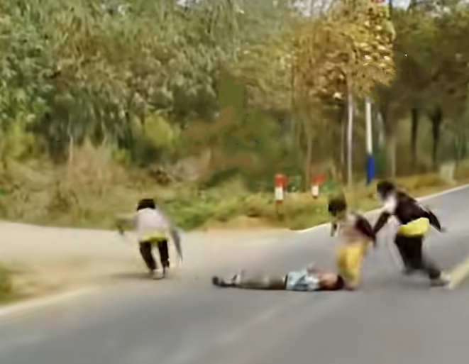 该视频发布后,不少人留言称,孩子躺在地上的情景“远看像一条减速带,或一条蟒蛇”,在车速较快的县道上极难辨认,行为十分危险。
